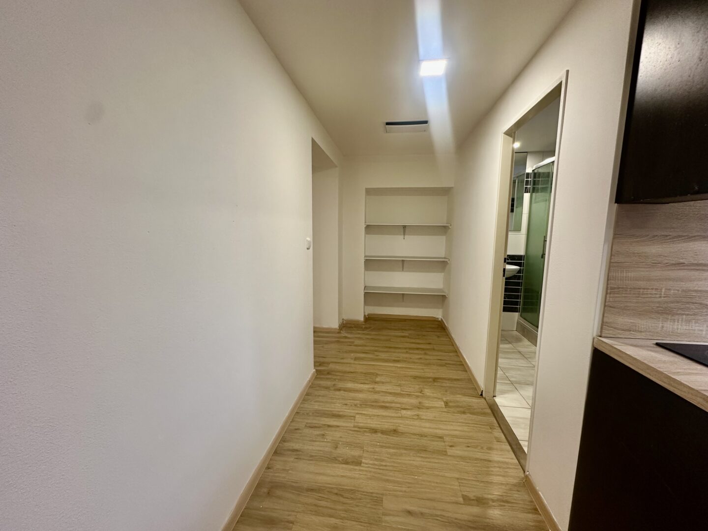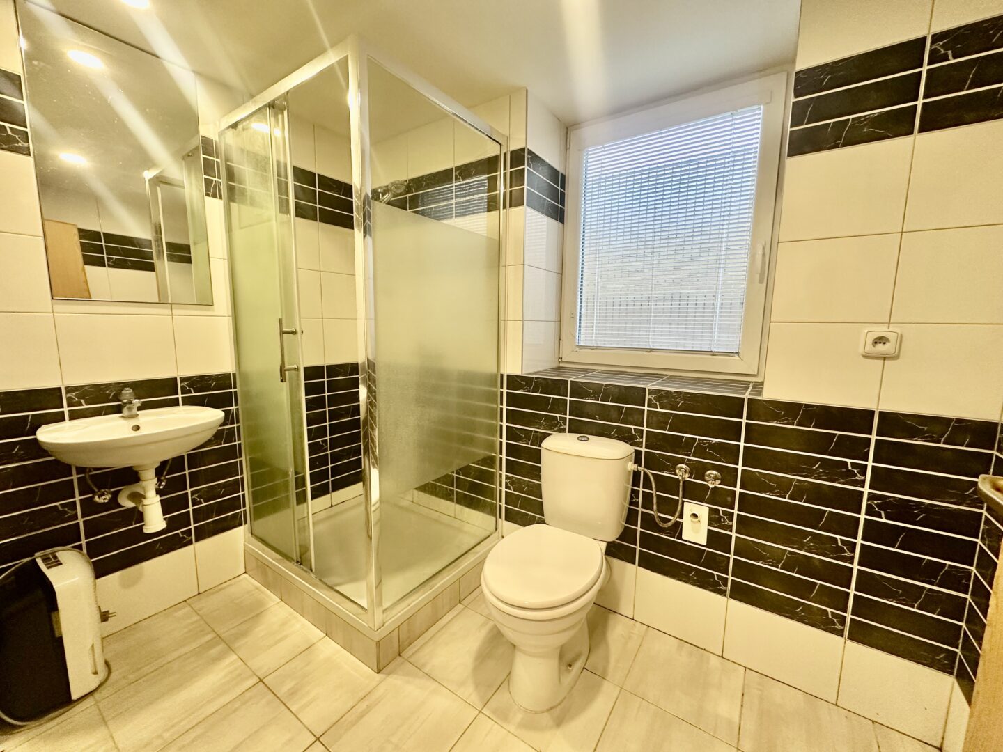 Koupelna je vybavena v čistém moderním stylu. - sprchový kout, umyvadlo , toaleta ,přípojka na automatickou pračku./ dlažba, keramické obklady.